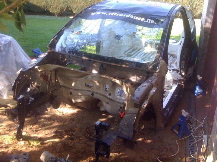 Désoudage de l'arceau, j'ai finalement coupé dans la voiture à des endroits. Gros travail, très mal mis et très mal équipé sur des petites chandelles dehors
