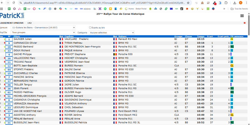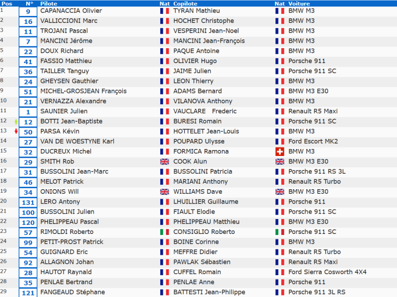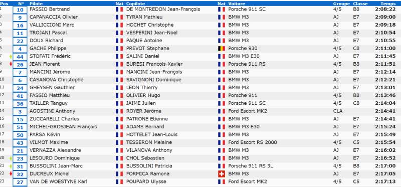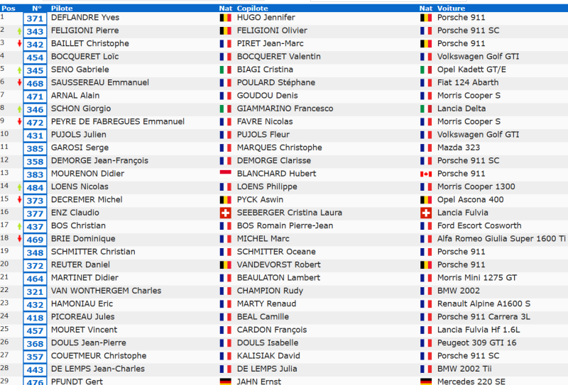 17eme Bussolini-Bussolini , 21eme Bussolini-Friault (1er rallye de la co-pilote) , 28eme Penlae-Penlae et 35eme Chambort-Sevrin (Co-pilote belge).
