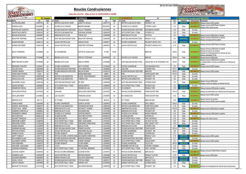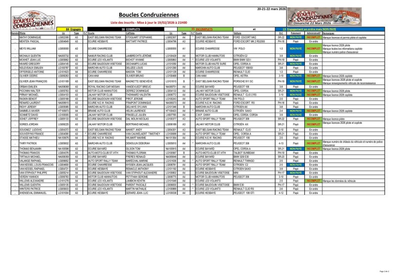 A 3 semaines tout pile de la clôture des engagements à droits simples et à un mois de l'ouverture des hostilités avec la journée VIP-SHAKEDOWN, voici notre seconde liste des 84 équipages ayant rentré leurs engagements ; de très bon augure quand on sait les nombreuses têtes manquantes restant à confirmer !