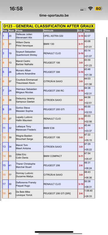 Dommage pour Romain Delhez qui faisait des merveilles dans les 3 premières (en roulant à vue). Contraint à l'abandon faute de sachet dans la Porsche pour le co-pilote🤮