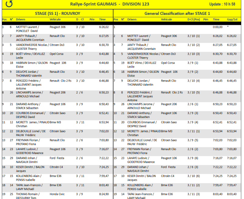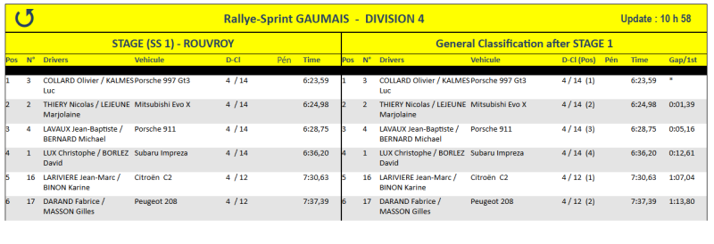 En tête pour le moment, en D4 Olivier Collard et le retour de Patrice Devillers en PH qui n a rien perdu depuis ses 20 ans 😀!