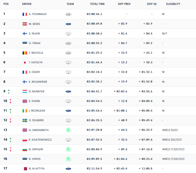 Dans un pays nouveau pour le WRC, le classement ressemble à une feuille que le vent aurait retournée :